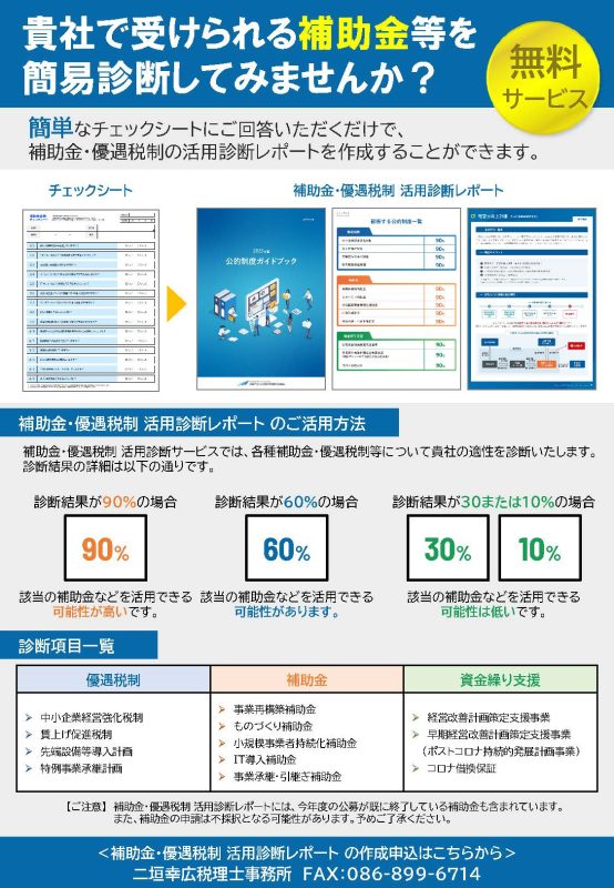 2023.02.23 【無料サービス】貴社で受けられる補助金等を簡易診断してみませんか?