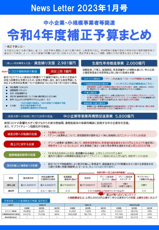 2023.01.07 【2023年1月号】NewsLetter(令和4年度補正予算まとめ)