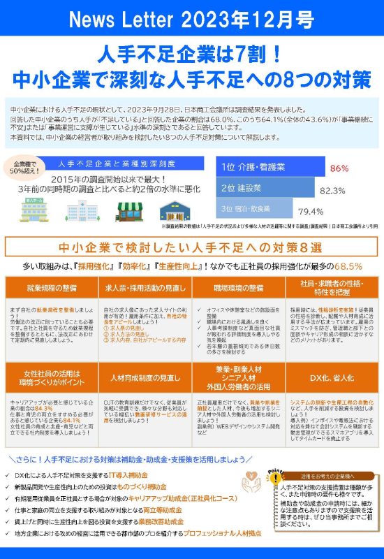 2023.11.30 【2023年12月号】NewsLetter(人手不足への8つの対策)