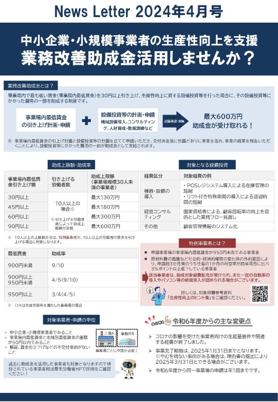 2024.03.27 【2024年4月号】NewsLetter(業務改善助成金)