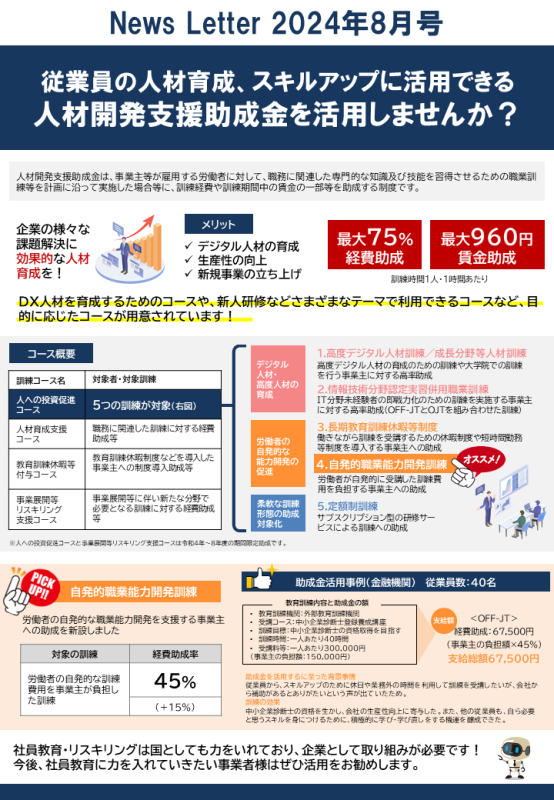 2024.08.01 【2024年8月号】NewsLetter(人材開発支援助成金)