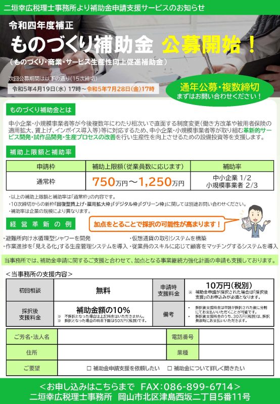 2023.04.22 ものづくり補助金(第15次締切分)の公募が開始されました!