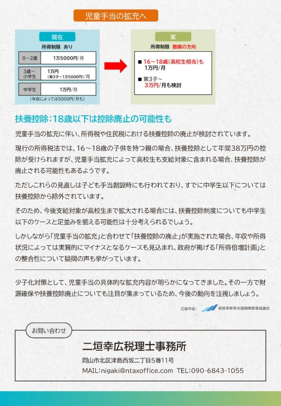 今回のテーマは、『実質的に増税!?児童手当拡充に伴い、扶養控除廃止の検討へ』です。