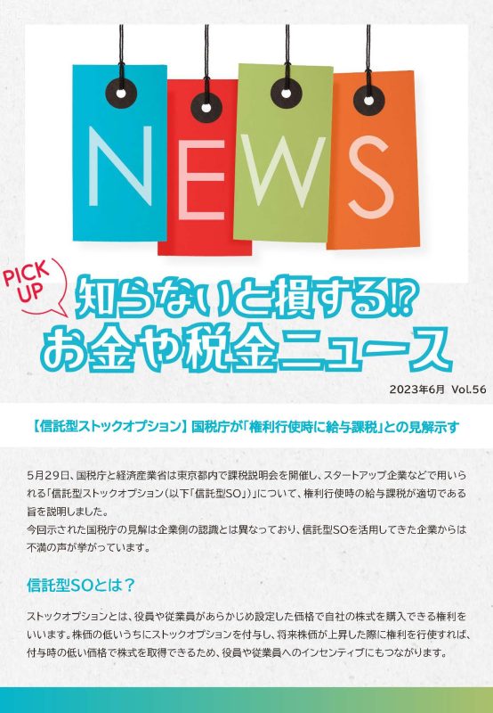 5月29日、国税庁と経済産業省は東京都内で課税説明会を開催し、スタートアップ企業などで用いられる「信託型ストックオプション(以下「信託型SO」)」について、権利行使時の給与課税が適切である旨を説明しました。