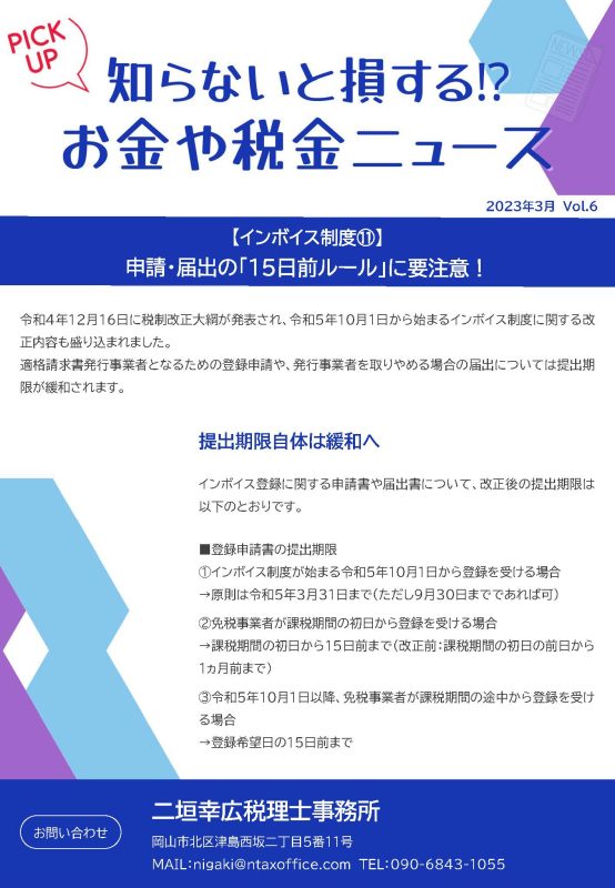 令和4年12月16日に税制改正大綱が発表され、令和5年10月1日から始まるインボイス制度に関する改正内容も盛り込まれました。