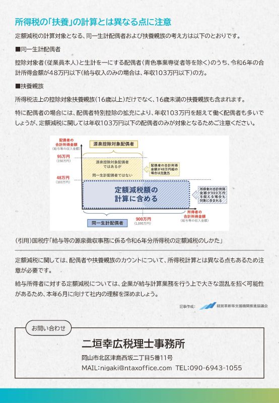 定額減税に関しては、配偶者や扶養親族のカウントについて、所得税計算とは異なる点もあるため注意が必要です。